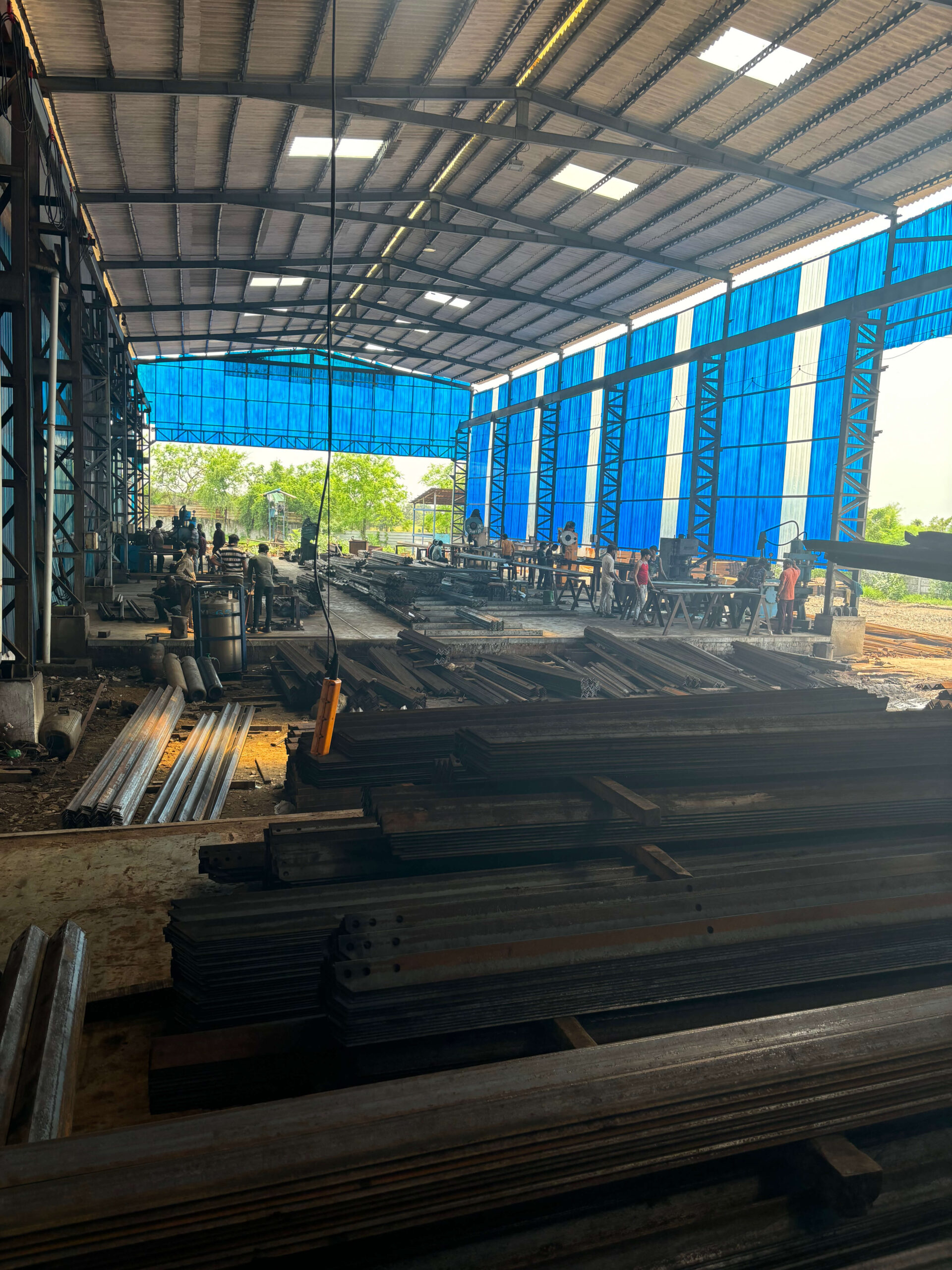 With 25000 Sq Ft fabrication shop equipped with 5 EOTs of 5 MT capacity each for smooth handling of the materials we are capable to fabricate heavy structures without distortion or bending of the material.